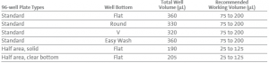 ⚑ 微孔板每孔的工作液体积和最大体积分别是多少?